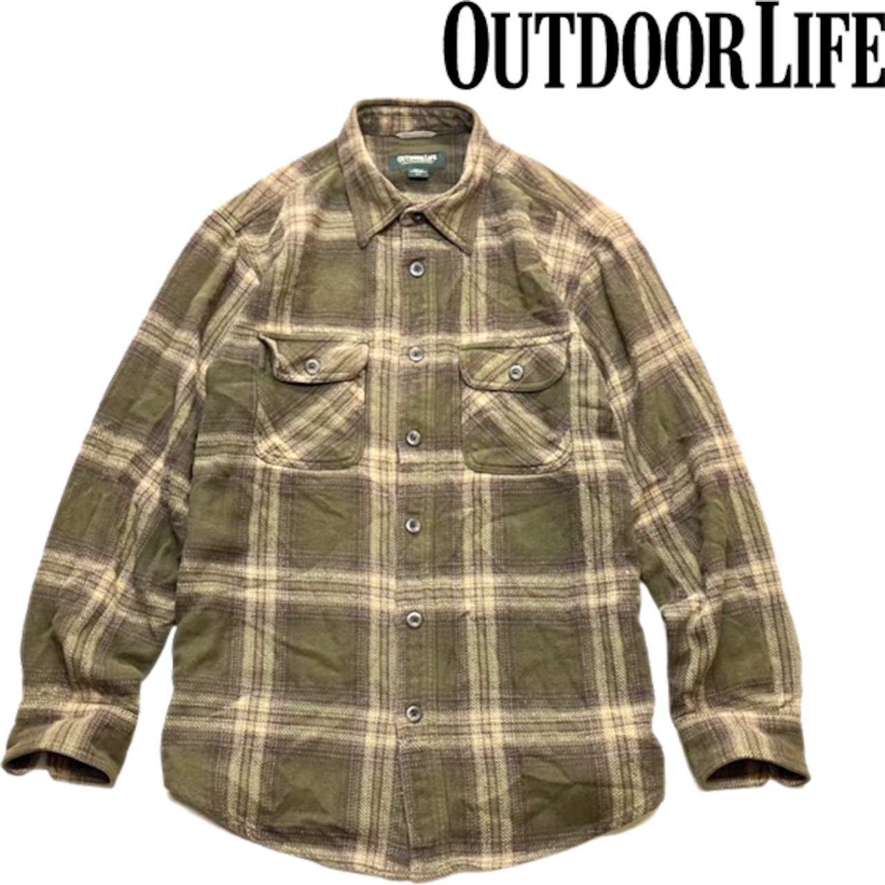 1点物◆OUTDOOR LIFE茶ネルシャツ長袖オンブレチェックシャツ古着メンズMLレディースOKアメカジ90sストリートUSAアウトドアブランド362273 | 古着屋カチカチ 東京都北区 JR王子駅前で実店舗展開中 通販もOK Tokyo Japan