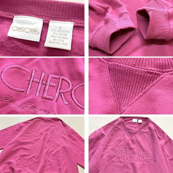 1点物◆CHEROKEEピンク前Vブランドロゴ刺繍スウェット古着メンズL/XLレディースOKアメカジ90sストリート/スポーツブランドトレーナー362280