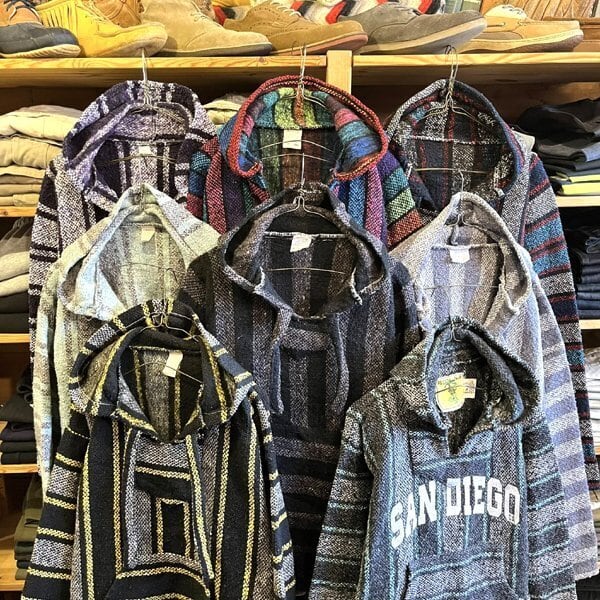 メキシカンラグを使用し伝統的織物をルーツに持つパーカー。