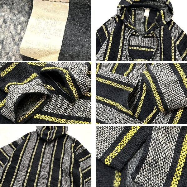 1点物◆黒メキシカンパーカー本場ストライプ柄ジャケット古着メンズSMレディースOKアメカジ90sストリート/スポーツブランドメキパー362297