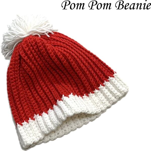 1点物◆手編みザックリ赤白ボンボンニット帽ニットキャップ古着メンズレディースOKアメカジ90sストリートビーニー帽子ブランド手作り362310 | 古着屋カチカチ 東京都北区 JR王子駅前で実店舗展開中 通販もOK Tokyo Japan