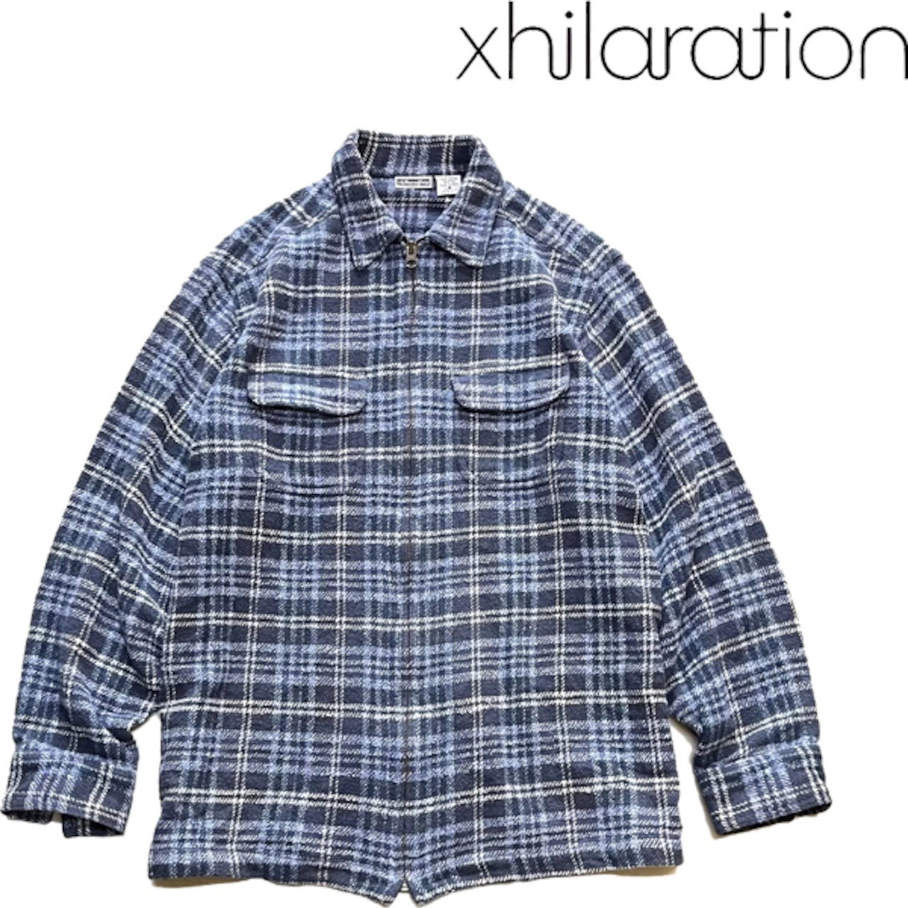 1点物◆XHILARATIONチェック柄ブルゾンジャケット古着SMメンズレディースOKアメカジ90sストリート/スポーツUSAブランド青紺ブルゾン362323 | 古着屋カチカチ 東京都北区 JR王子駅前で実店舗展開中 通販もOK Tokyo Japan