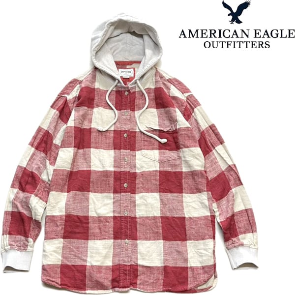 1点物◆アメリカンイーグルAEフード付きチェック柄ネルシャツパーカー古着メンズレディースOKアメカジ90sストリートスポーツブランド362327 | 古着屋カチカチ 東京都北区 JR王子駅前で実店舗展開中 通販もOK Tokyo Japan