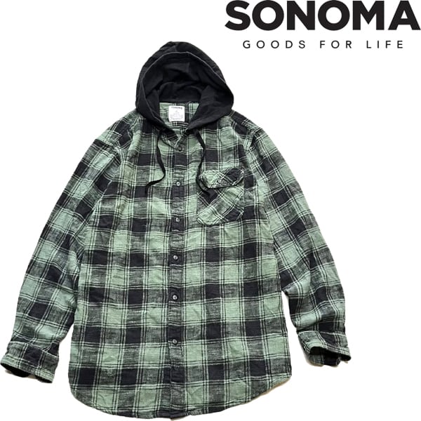 1点物◆ソノマSONOMAフード付きチェック柄ネルシャツパーカー古着メンズMLレディースOKアメカジ90sストリートスポーツブランド深緑黒362328 | 古着屋カチカチ 東京都北区 JR王子駅前で実店舗展開中 通販もOK Tokyo Japan