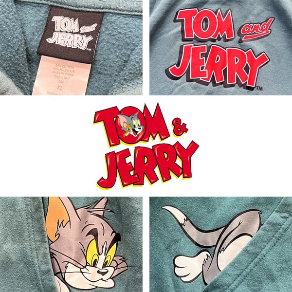 1点物◆トムとジェリーTom & Jerryプリントスウェットパーカー古着メンズXLレディースOKアメカジ90sストリートUSAブランド緑キャラ362340 | 古着屋カチカチ 東京都北区 JR王子駅前で実店舗展開中 通販もOK Tokyo Japan