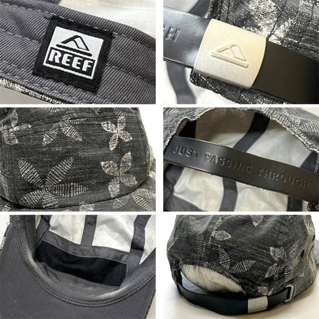 1点物◆REEFリーフ葉っぱ総柄デザイン帽子ベースボールキャップ古着メンズレディースOKアメカジ90sストリート/スポーツブランド黒灰362404 | 古着屋カチカチ 東京都北区 JR王子駅前で実店舗展開中 通販もOK Tokyo Japan