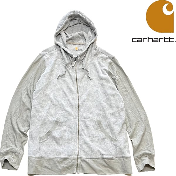 1点物◆カーハート薄手サーマル地ジップアップパーカー古着メンズレディースOKアメカジ90sストリートUSAワークブランド灰グレー中古362421 | 古着屋カチカチ 東京都北区 JR王子駅前で実店舗展開中 通販もOK Tokyo Japan