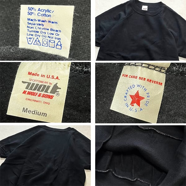 1点物◆USA製ビンテージ黒80s半袖スウェット古着メンズMレディースOKアメカジ90sストリート/スポーツブランドUSトレーナーWOLFウルフ362473 | 古着屋カチカチ 東京都北区 JR王子駅前で実店舗展開中 通販もOK Tokyo Japan