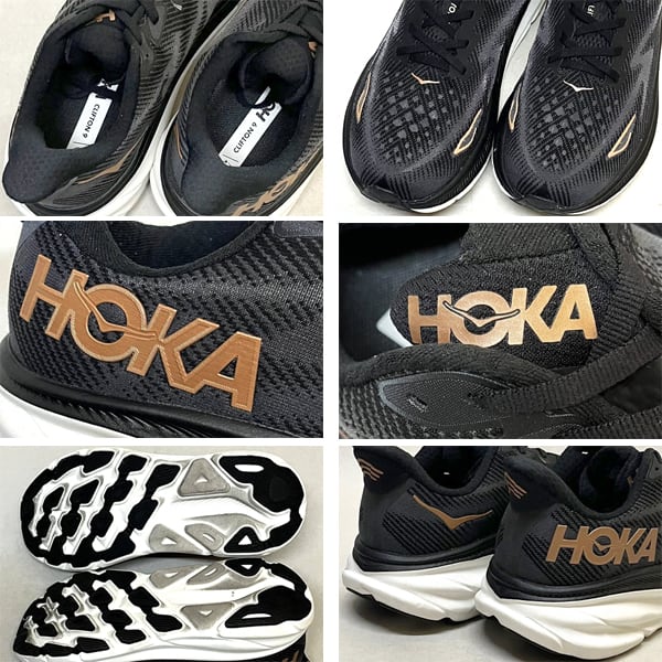 モデル名: CLIFTON 9、 素材: メッシュ、 色: 黒/茶。
