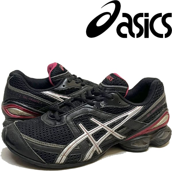 1点物◆アシックスasics海外モデル黒スニーカーUSA古着25.5メンズレディースOKアメカジ90sストリートスポーツ靴シューズブランド中古362494