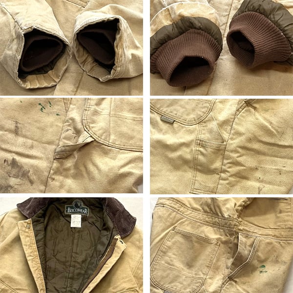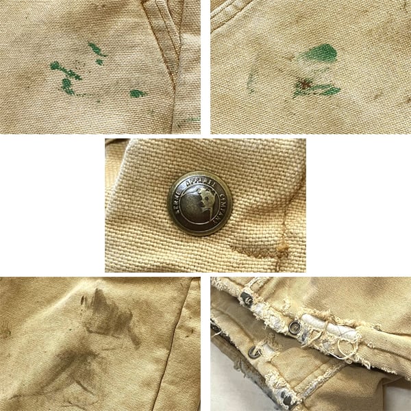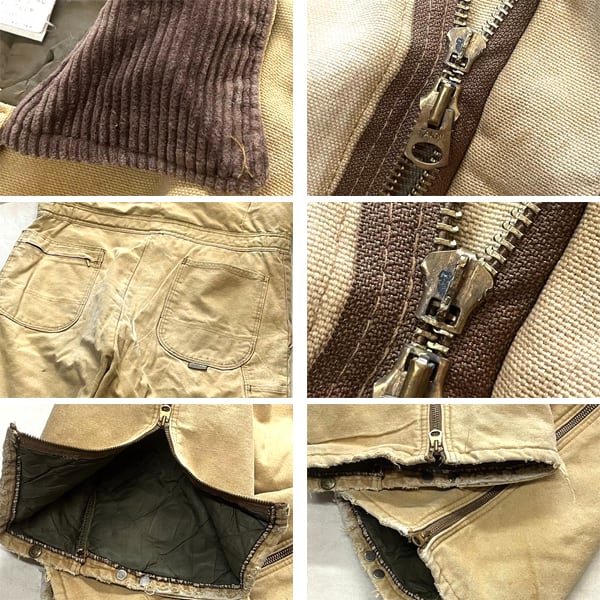 中古 使用感あり (全体的な黒ずみやペンキ跡、 裾にスレほつれダメージ、 フロントジッパーのヘッド欠損 上下稼動には問題なし)。(写真参照)