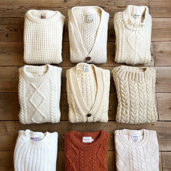 1点物◆UK製ビンテージ90sウール100%アランニットセーター古着メンズSMレディースOKアメカジブランド90sストリート/スポーツベージュ362676