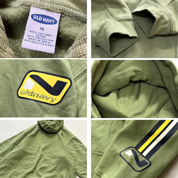 1点物◆GAP系オールドネイビーONハーフジップ袖プリントスウェットパーカー古着ボーイズXLメンズレディース/アメカジ90sストリート緑362719 | 古着屋カチカチ 東京都北区 JR王子駅前で実店舗展開中 通販もOK Tokyo Japan