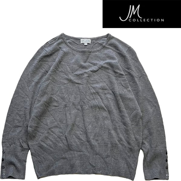 1点物◆JM COLLECTIONボタン袖口ニットセーター古着レディースXLメンズOKアメカジ90sストリート/スポーツUSAブランド灰色グレー中古362778 | 古着屋カチカチ 東京都北区 JR王子駅前で実店舗展開中 通販もOK Tokyo Japan
