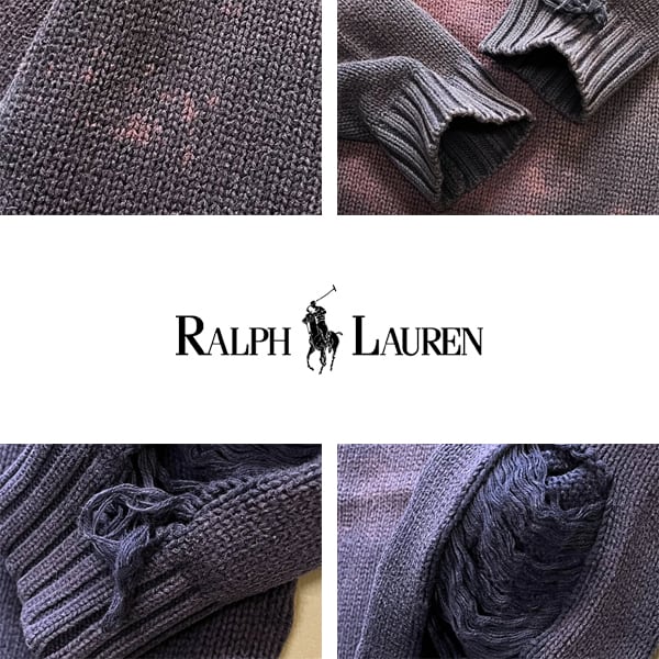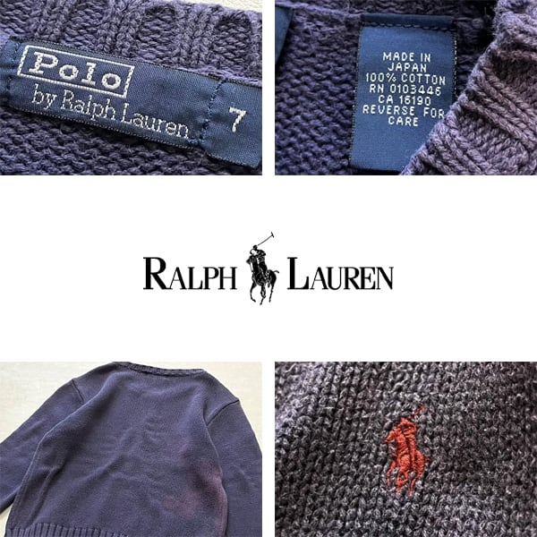 1点物◆ラルフローレン襤褸ボロ雰囲気系ニットセーター古着キッズ子供用アメカジ90sストリート/スポーツUSAブランドネイビーなす紺362774 | 古着屋カチカチ 東京都北区 JR王子駅前で実店舗展開中 通販もOK Tokyo Japan