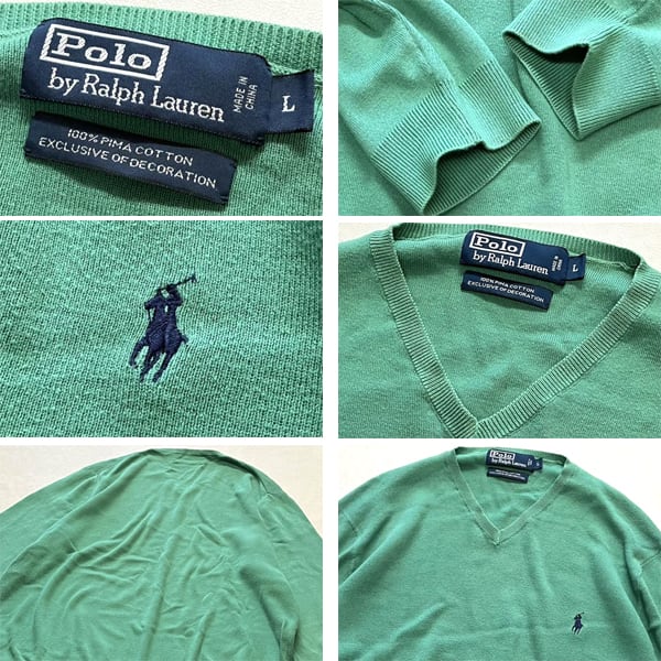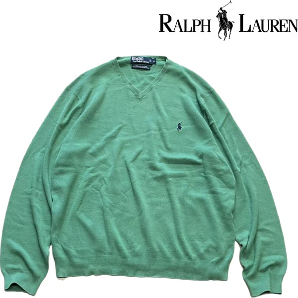1点物◆ラルフローレンVネックPOLOピマコットンニットセーター古着メンズLレディースOKアメカジ90sストリート/スポーツUSAブランド緑362776 | 古着屋カチカチ 東京都北区 JR王子駅前で実店舗展開中 通販もOK Tokyo Japan