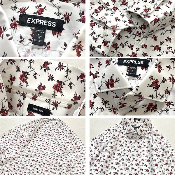 1点物◆エクスプレス小花柄EXPRESS白シャツ古着メンズMLレディースOKアメカジ90sストリートスポーツ中古USAブランド長袖ロンT362787 | 古着屋カチカチ 東京都北区 JR王子駅前で実店舗展開中 通販もOK Tokyo Japan