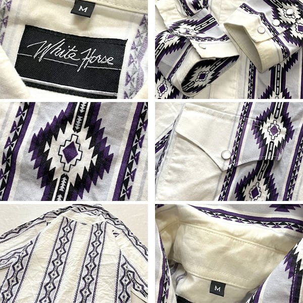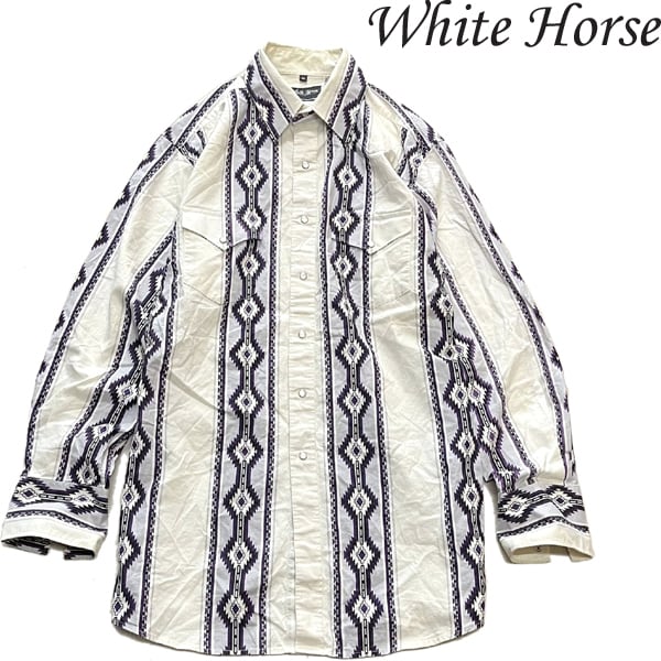 1点物◆インディアン柄白シャツ長袖ウエスタンシャツ古着メンズMLレディースOKアメカジ90sストリートスポーツMixブランドWhite Horse362786 | 古着屋カチカチ 東京都北区 JR王子駅前で実店舗展開中 通販もOK Tokyo Japan