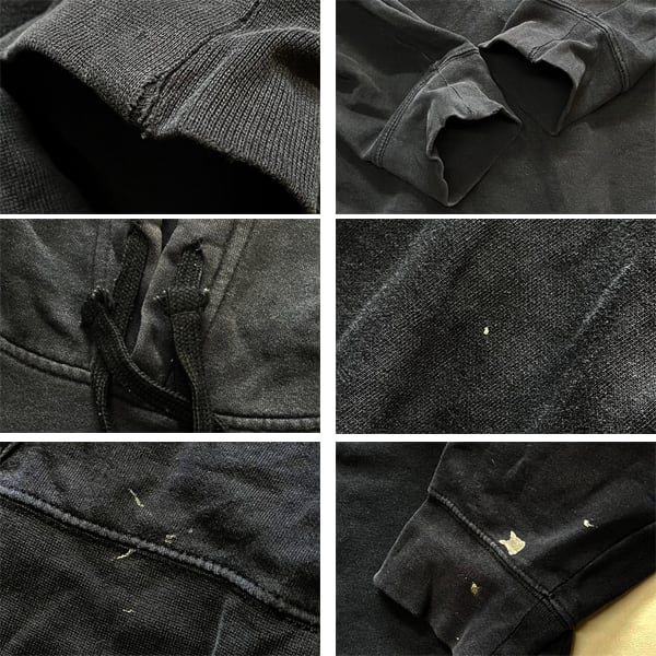 中古 使用感あり (色あせ感、 袖口にヤブレや所々にペンキ跡)。 (写真参照)