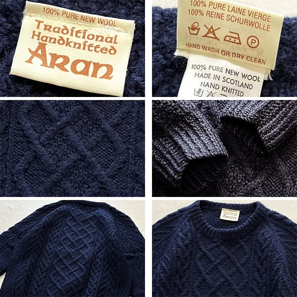 1点物◆スコットランド製ARAN紺アランニットセーター古着メンズSMレディースOKアメカジ90sストリート中古フィッシャーマンUSブランド362908