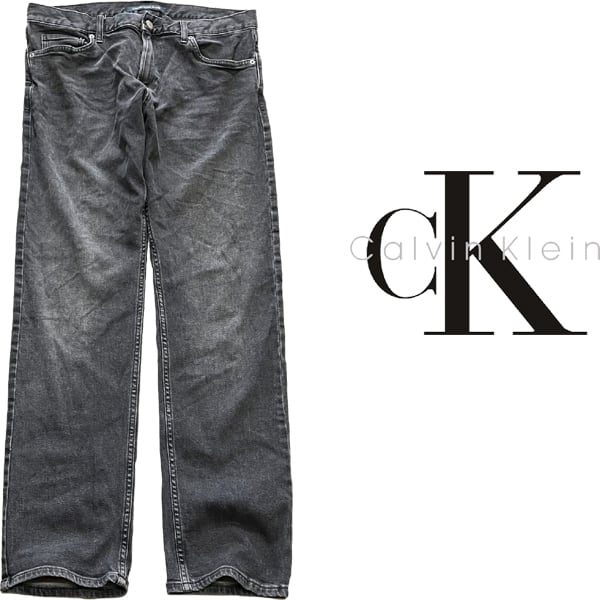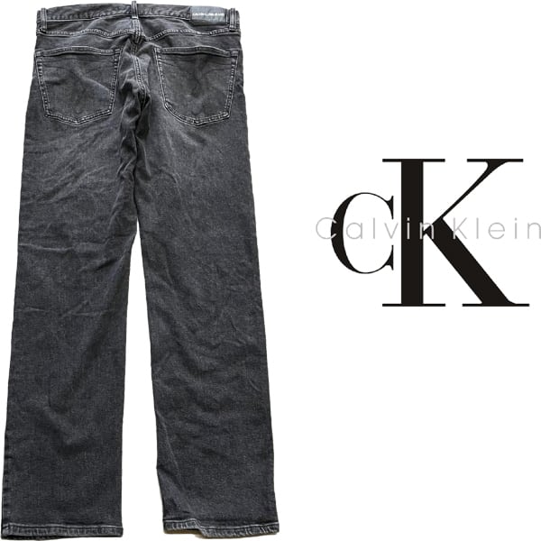 1点物◆カルバンクラインCKデニム黒ブラックジーンズ古着メンズ34レディースOKアメカジ90sストリート中古USAブランド灰色ストレート362925