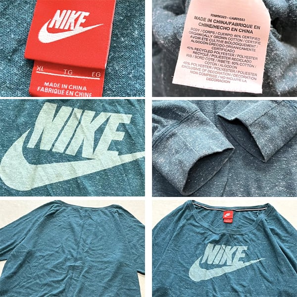1点物◆ナイキNike5部袖グリーン薄手スウェット古着メンズレディースOKアメカジ90sストリート/スポーツUSAブランド中古トレーナー緑362937