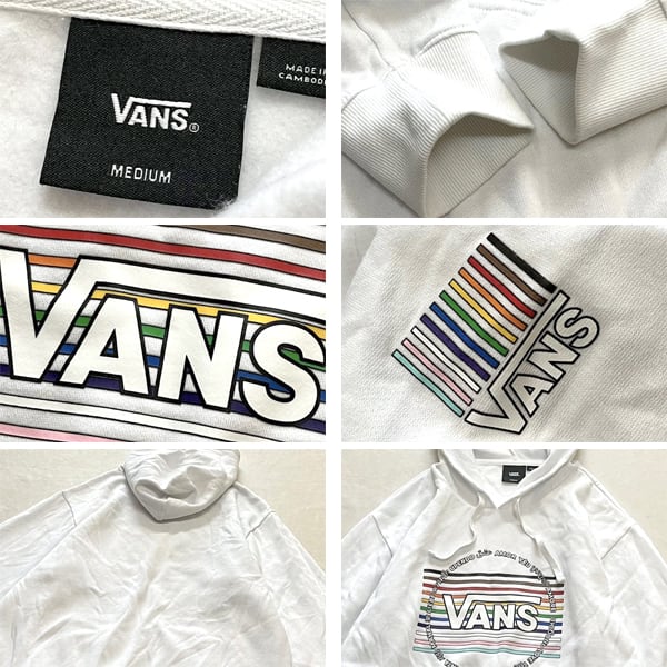 1点物◆バンズVANS白プリントスウェットパーカー古着メンズMLレディースOKアメカジ90sストリート/スポーツUSAスケートSK8ブランド362940