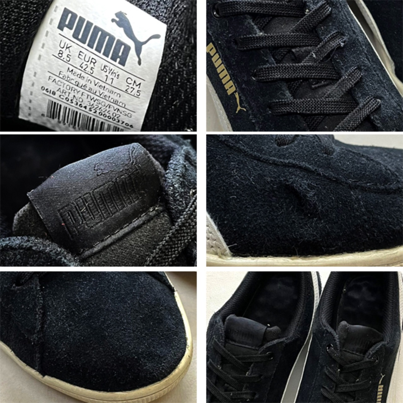 1点物◆プーマPUMA黒白スエードスニーカーSuedeシューズ古着27.5メンズレディースOKアメカジ90sストリート中古スポーツブランド革靴362987