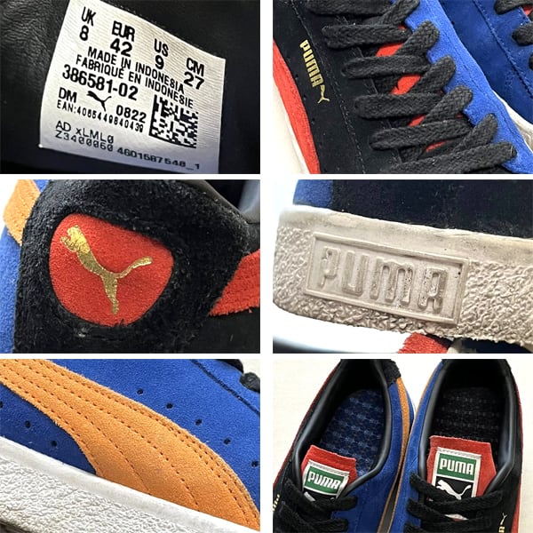 1点物◆プーマPUMA黒スエードスニーカーSuedeシューズ古着メンズ27レディースOKアメカジ90sストリートスポーツブランド青赤オレンジ362986