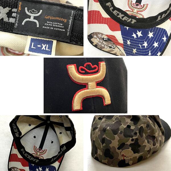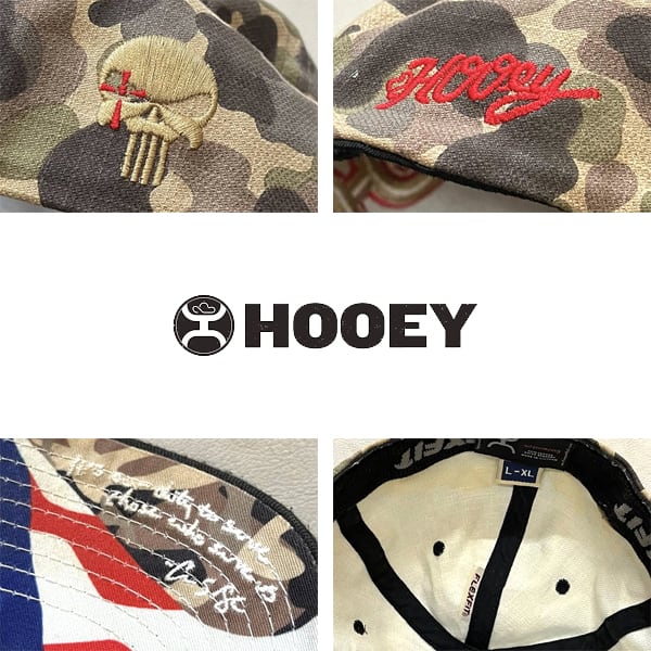 1点物◆HOOEY星条旗ツバ裏ツートン迷彩キャップ帽子US古着メンズL/XLレディースOKアメカジ90sストリート/スポーツUSAブランド中古362305