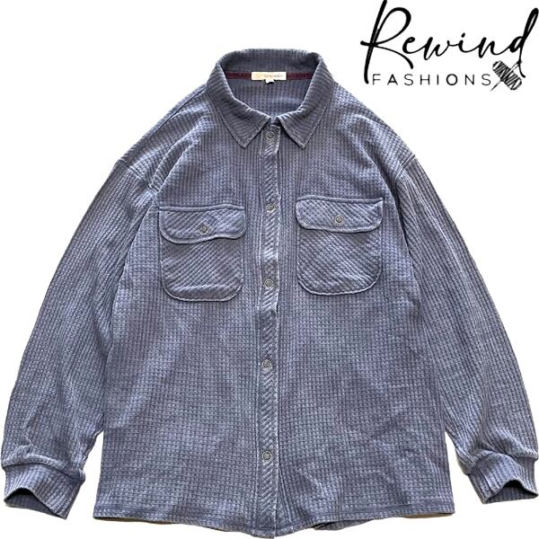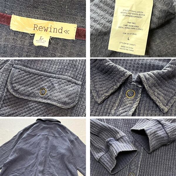 1点物◆Rewindワッフル素材サーマル長袖ロンTシャツ紺スウェットシャツ古着レディースLメンズOKアメカジ90sストリート/スポーツUSA363019