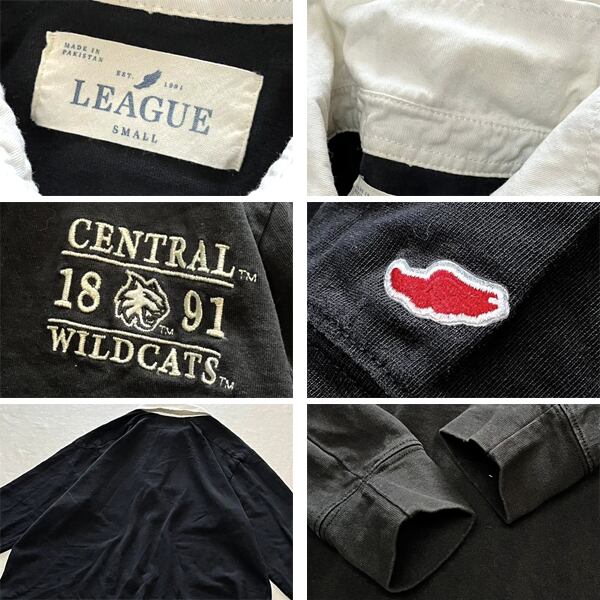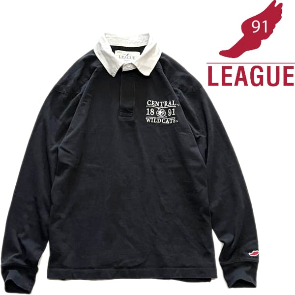 1点物◆リーグLeague長袖ラグビーシャツ黒ラガーシャツ古着メンズSMレディースOKアメカジ90sストリート/スポーツUSAブランド中古ポロ363015