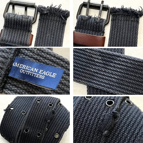 1点物◆アメリカンイーグル紺ビンテージ加工2つ穴ベルト古着メンズレディースOKアメカジ90sストリート/スポーツUSブランド中古ダブル363043