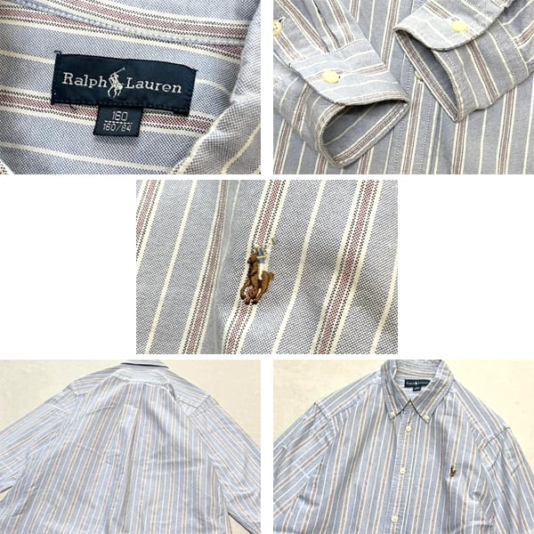 1点物◆RLラルフローレンPOLO長袖ストライプシャツ古着メンズ160レディースOKアメカジ90sストリート/スポーツUSAブランド中古Tシャツ363075