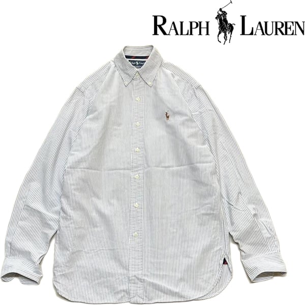 1点物◆RLラルフローレン長袖マチ付ストライプシャツ古着メンズSMレディースOKアメカジ90sストリート/スポーツUSAブランドTシャツ白363076