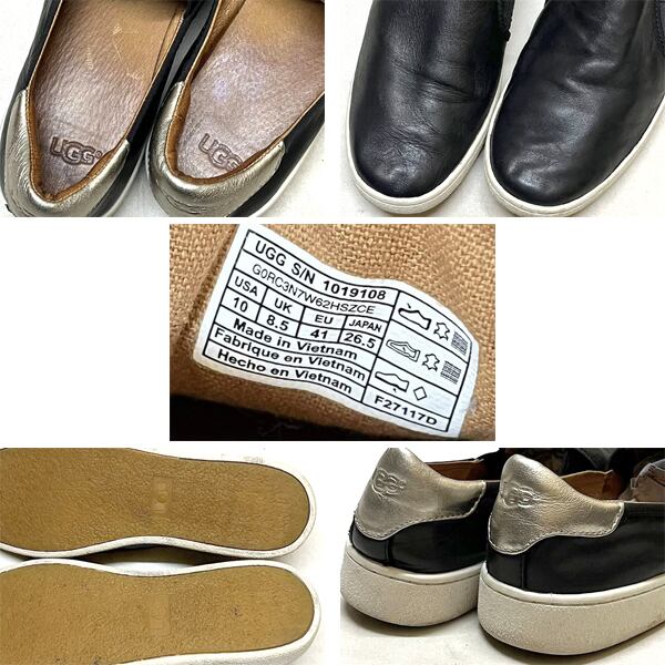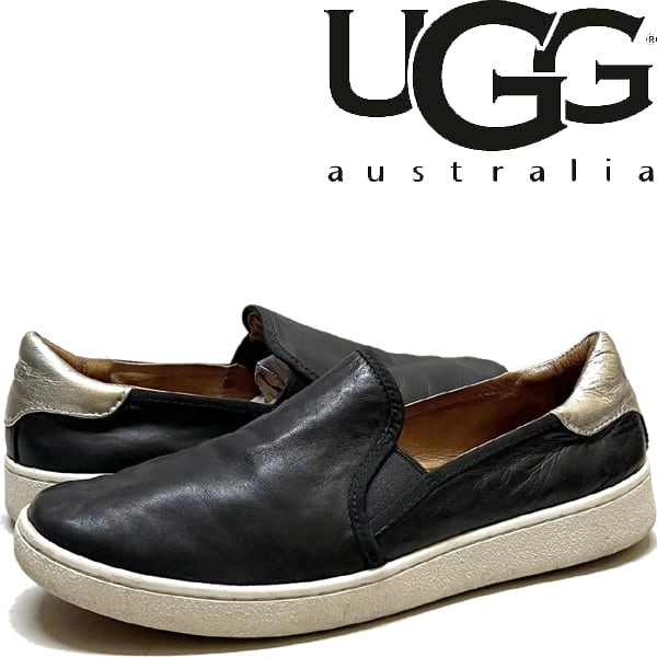 1点物◆アグUGGレザースニーカー黒スリッッポンシューズ古着26.5メンズレディースOKアメカジ90sストリート/スポーツ中古ブランドUSA363088