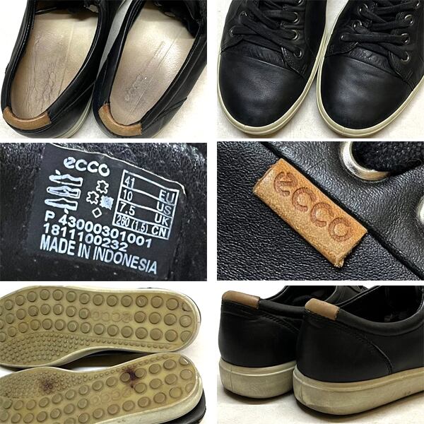 1点物◆エコーECCOレザースニーカー黒シューズ古着26メンズレディースOKアメカジ90sストリート/スポーツ中古ブランドUSAデンマーク363087