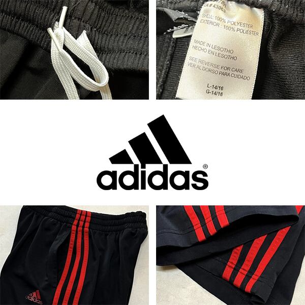 1点物◆アディダスadidasライン入り黒赤ジャージパンツ古着ボーイズLメンズレディースOKアメカジ90sストリート/スポーツブランド中古363131