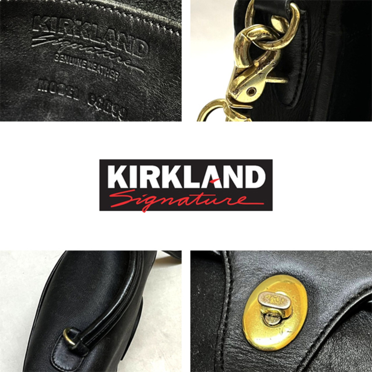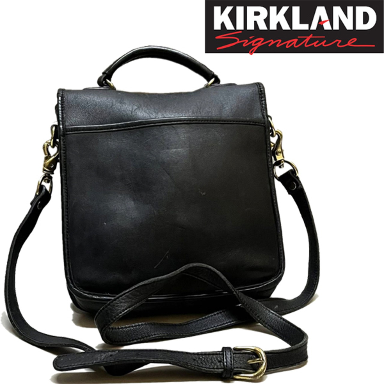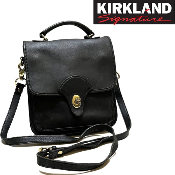 1点物◆Kirkland超肉厚グレインレザー黒本革ショルダーバッグ鞄ポーチ古着メンズレディースOKアメカジ90sストリート/コーチ/ブランド363142