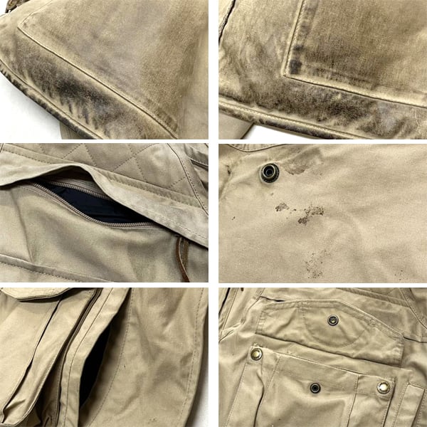 中古 使用感あり (全体的な黒ずみやヨゴレ、 特に裾裏地に黒ずみ)。(写真参照)