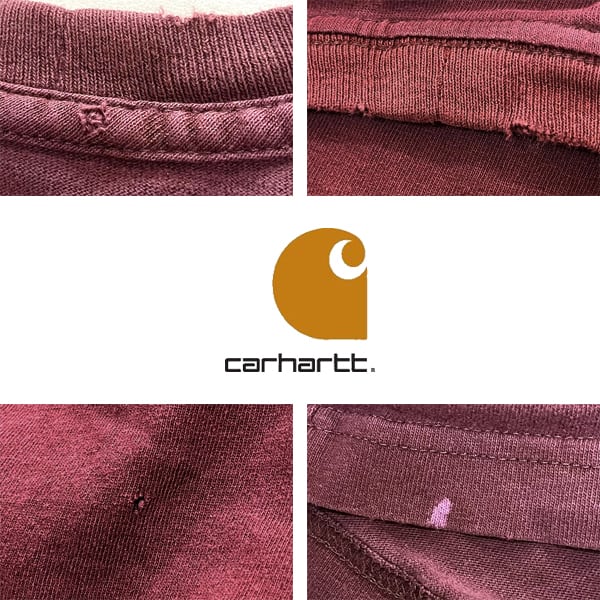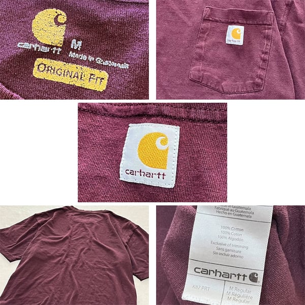 1点物◆カーハートCarhartt雰囲気系ポケットTシャツ半袖ポケT古着MメンズL/XLレディースOKアメカジ90sストリートUSAブランド色エンジ363155
