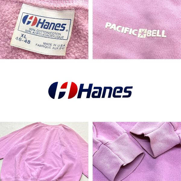 1点物◆USA製ビンテージ90sヘインズHanesプリントスウェット古着メンズXLレディースOKアメカジ90sストリートスポーツブランド/ピンク363158