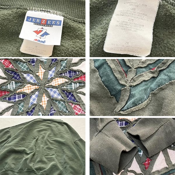 1点物◆USA素材90sビンテージJerzees深緑アートスウェット古着メンズXXLレディースOKアメカジ90sストリート中古ブランド/トレーナー363164