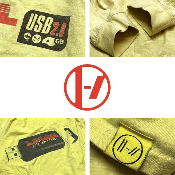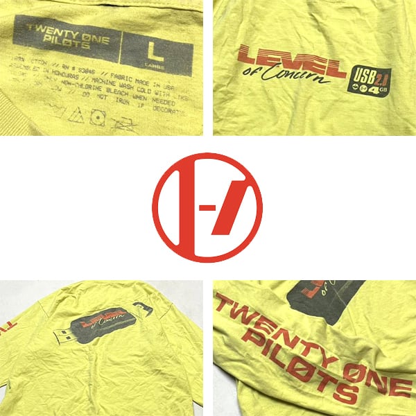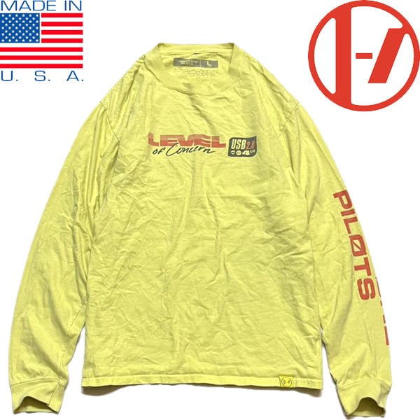 1点物◆USA製トゥエンティワンパイロッツTP袖プリント長袖ロンTシャツ古着メンズレディースOKアメカジ90sストリート黄バンドブランド363214