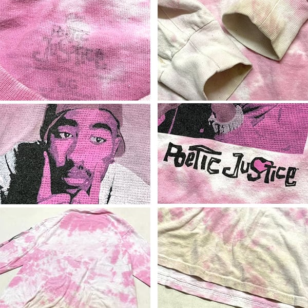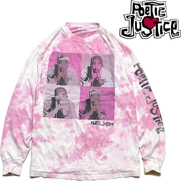 1点物◆映画Poetic Justiceタイダイ袖プリント長袖ロンTシャツ古着LメンズXLレディースOKアメカジ90sストリートUSブランド中古ピンク363217