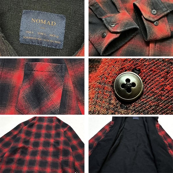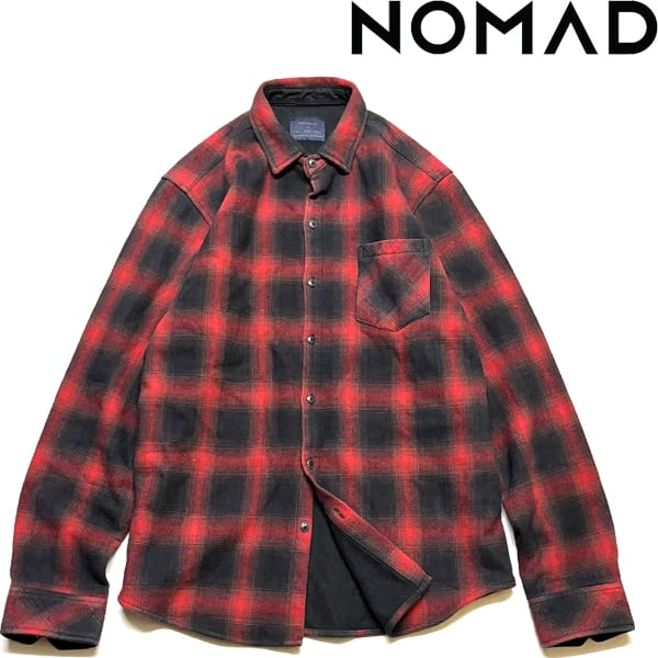 1点物◆NOMAD裏地サーマル赤黒オンブレチェックシャツ長袖ネルシャツ古着メンズLレディースOKアメカジ90sストリートUSAブランド中古363220
