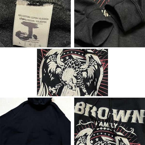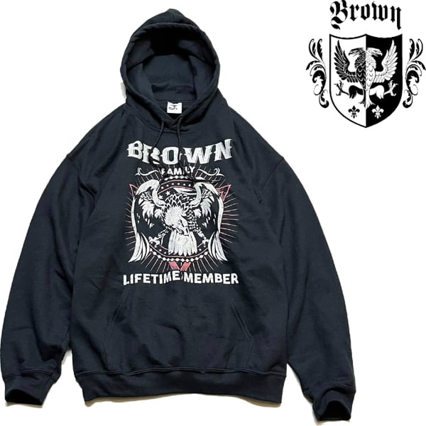 1点物◆Brown Family黒プリントスウェットパーカー古着LメンズXLレディースOKアメカジ90sストリートスポーツブランド中古トレーナー363228