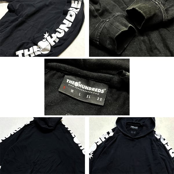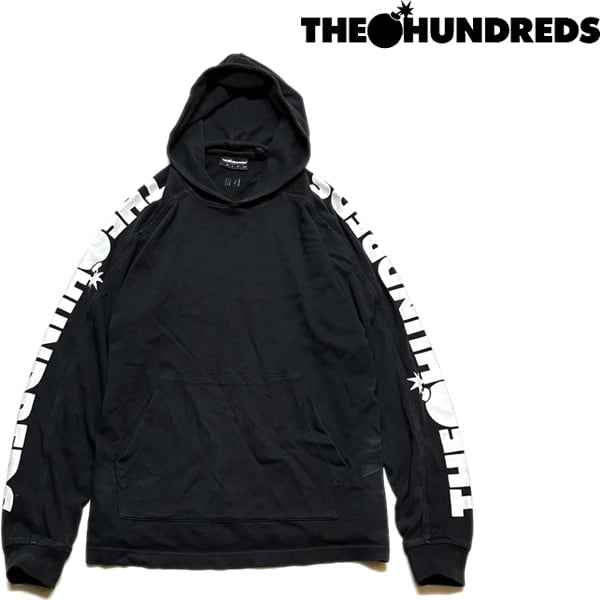 1点物◆The Hundreds袖プリント黒スウェットパーカー古着メンズSMレディースOKアメカジ90sストリートスポーツブランドUSAトレーナー363232