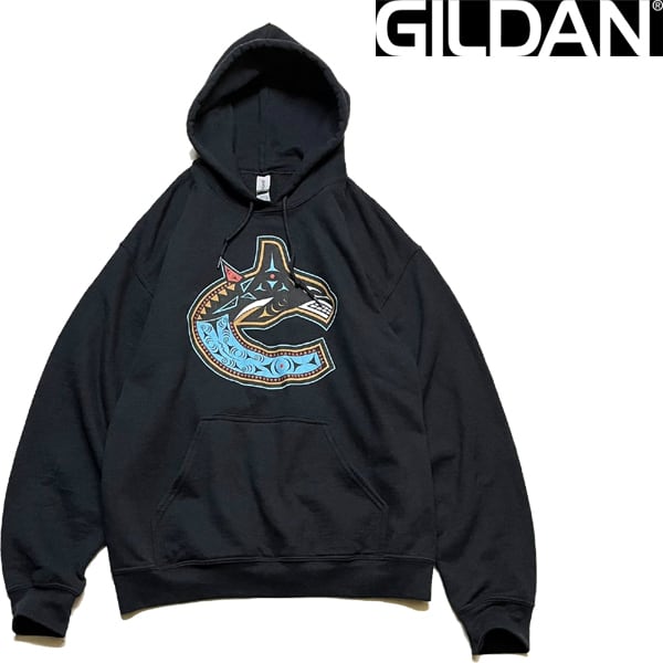 1点物◆黒クリンキット族プリントスウェットパーカー古着メンズMLレディースOKアメカジ90sストリートスポーツブランドXLトレーナー363230