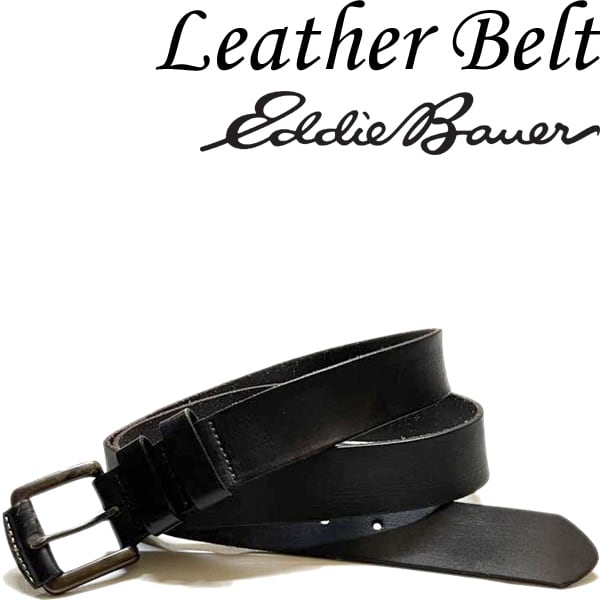 1点物◆エディーバウアーEBバックル付き黒革レザーベルト古着メンズXXLレディースOKアメカジ90sストリート/スポーツ中古USAブランド363241